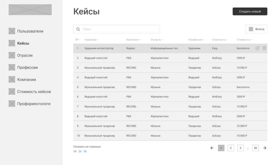 Это список «Кейсов» — набор заданий от определенной компании по конкретной специальности. Например, хочешь узнать с чем на работе сталкивается веб-дизайнер — проходи кейс → узнавай → если понравится и хорошо справишься — попадай на стажировку.