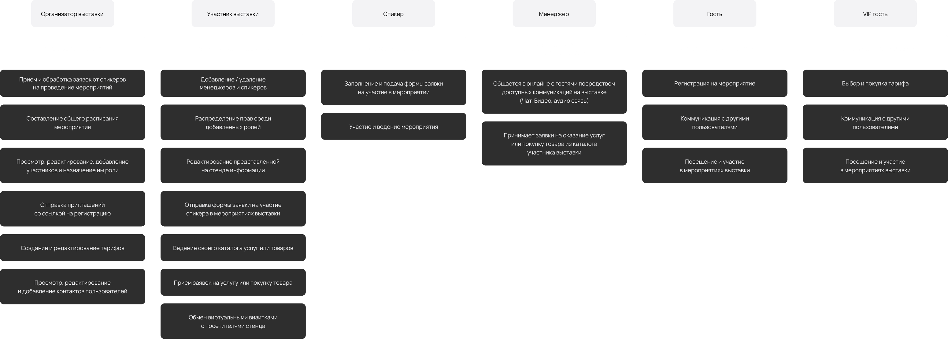 Проработать систему навигации в рамках виртуальных пространств, создать интерфейс удобного чата и личного кабинета для управления выставками, их изучения и общения, учитывая сложную ролевую систему.