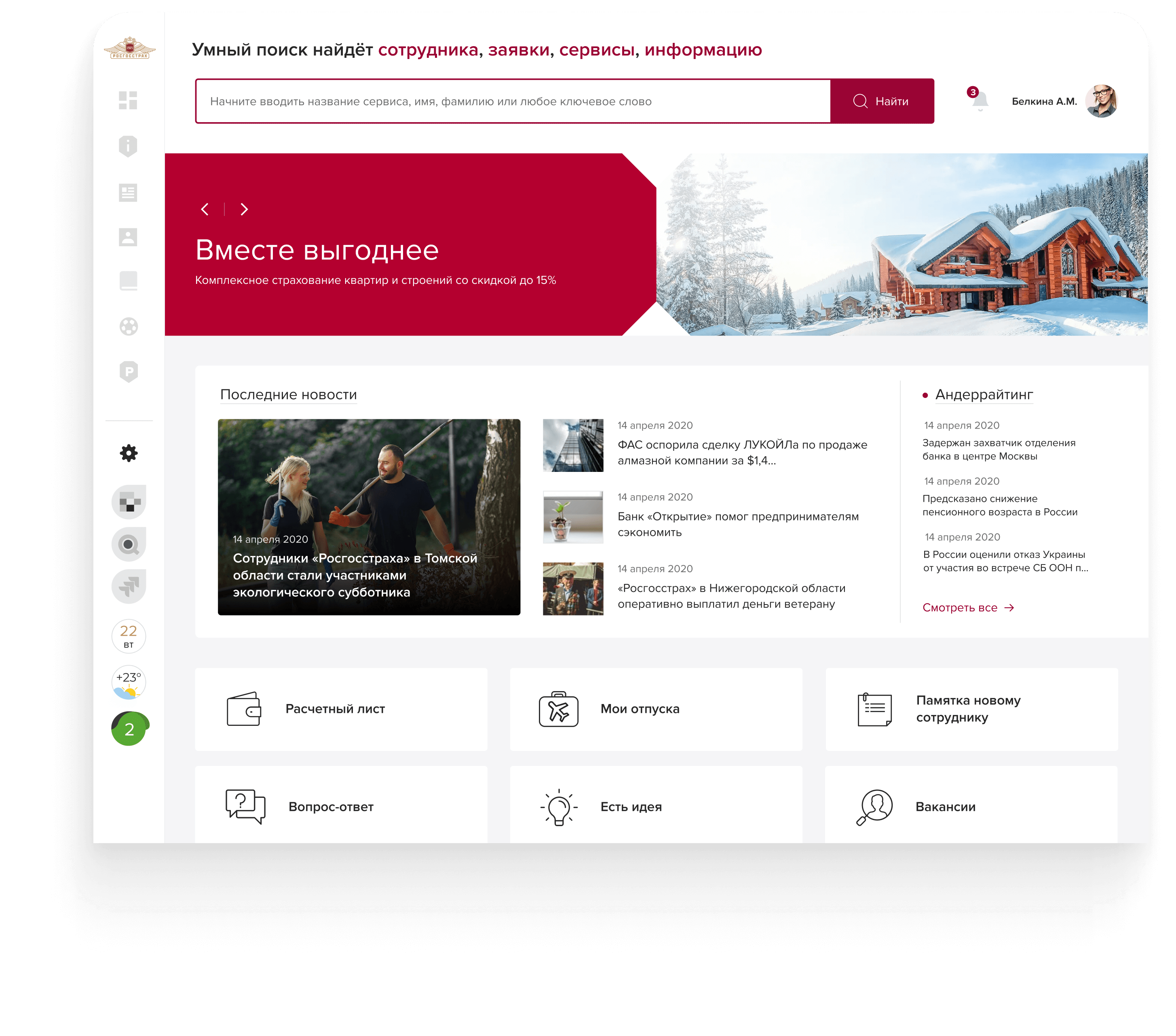 Чаще всего встречались пожелания, связанные с быстрым поиском: например, информации о коллегах, корпоративных и отраслевых новостей или необходимых документов. Кроме того, сотрудники просили упростить доступ к различным сервисам и заявкам, предоставить возможность создавать рабочие группы и группы по интересам.