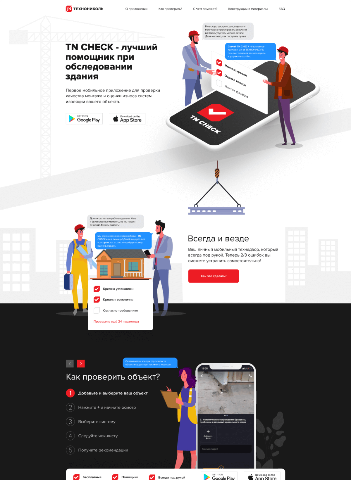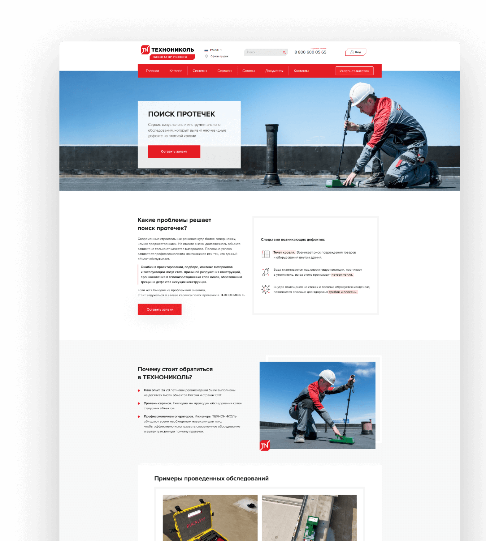 Интерфейс для физических лиц и организаций, которые являются клиентами ТЕХНОНИКОЛЬ. Позволяет хранить всю необходимую информацию по объектам строительства, отслеживать статусы выполнения сервисов, выполнять