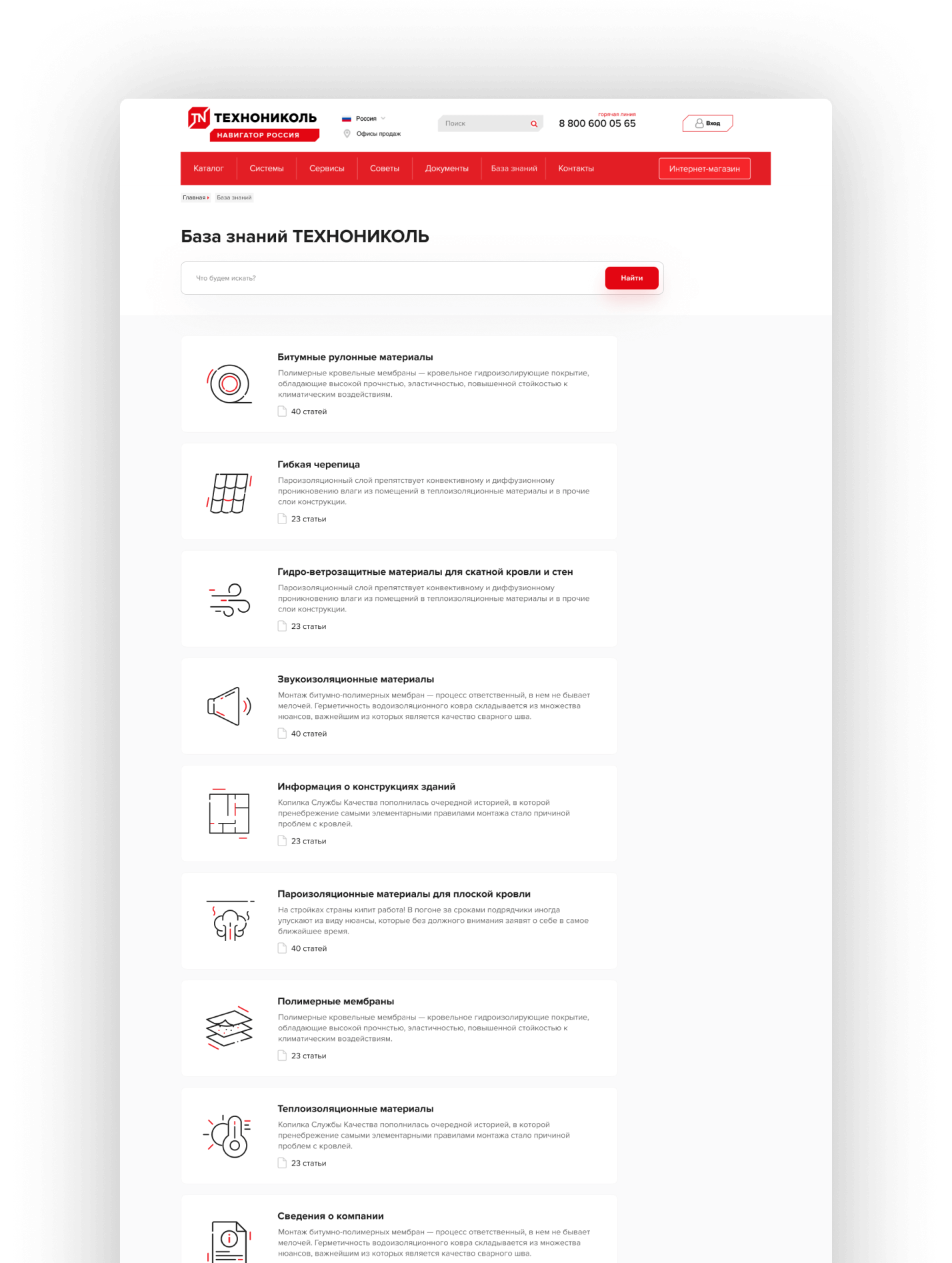 Разработали публичную базу знаний для размещения справочной информации и уникальных статей от ТЕХНОНИКОЛЬ
