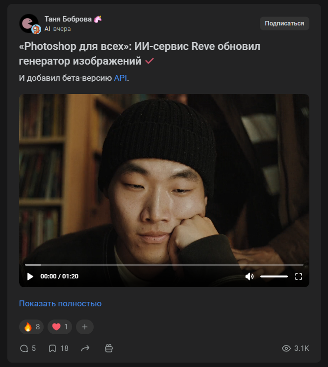 Из минусов — чтобы перейти на статью нужно кликнуть именно на заголовок. Если кликнуть на фото, то оно увеличится. Если на видео — поставится на паузу/снимется с неё. На остальные элементы — произойдут точечные взаимодействия. «Глазик» покажет чуть больше инфы по просмотрам, а реакции — неудивительно, поставят реакцию. Словно было бы гораздо удобнее переходить на статью по клику на карточку, а не стараться целиться в заголовок.