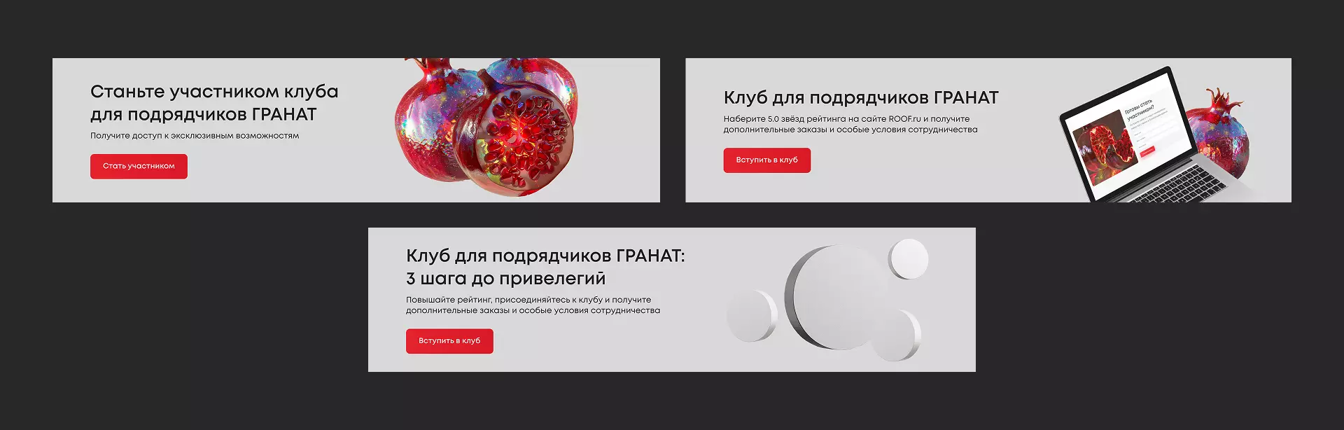 Моё основное направление — рекламные креативы. Делаю баннеры для ТЕХНОНИКОЛЬ, Клуба Первых (от СБЕР) и Совкомбанка . На примере двух креативов для Roof.ru, я расскажу, какие этапы проходит баннер перед релизом — от поиска визуального образа до финального дизайна.